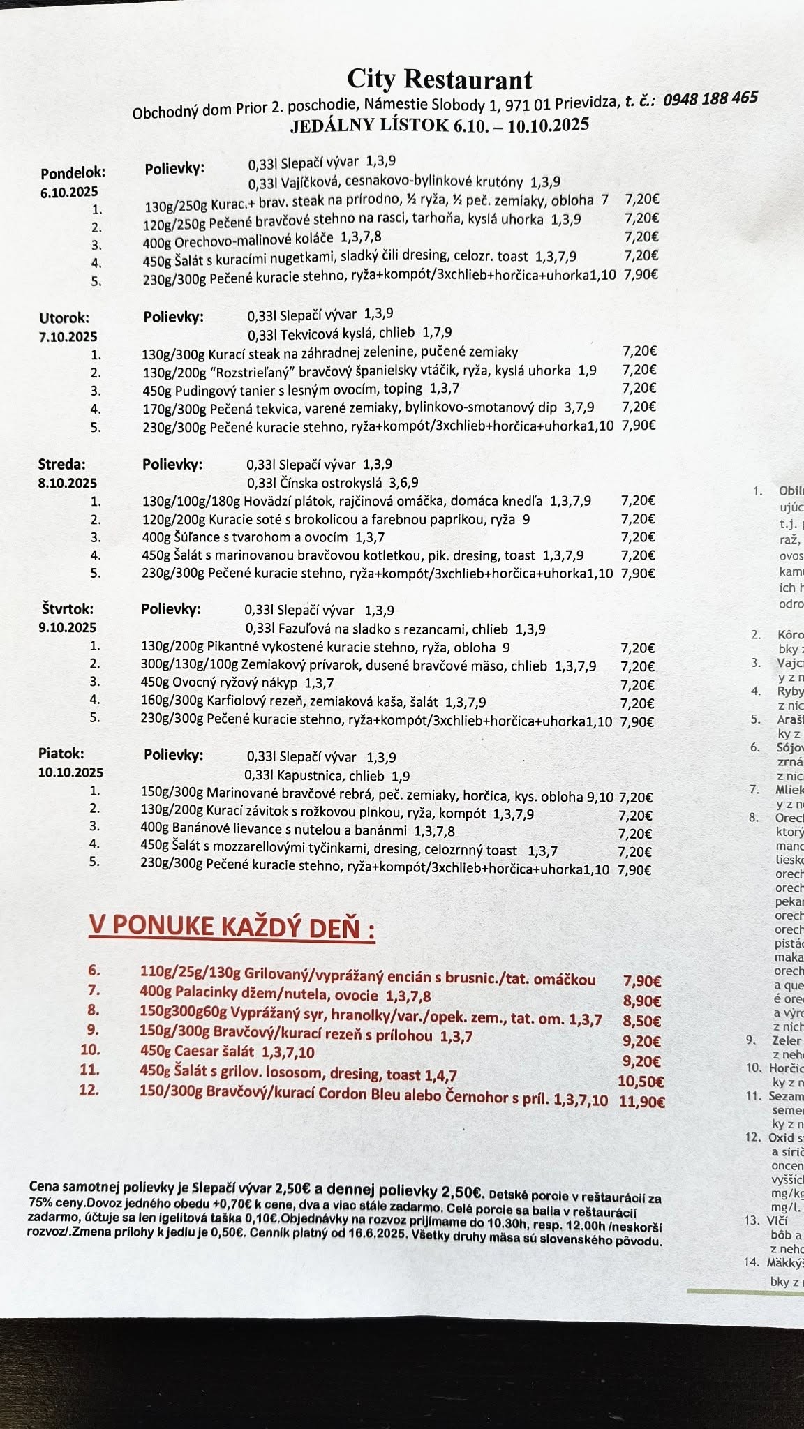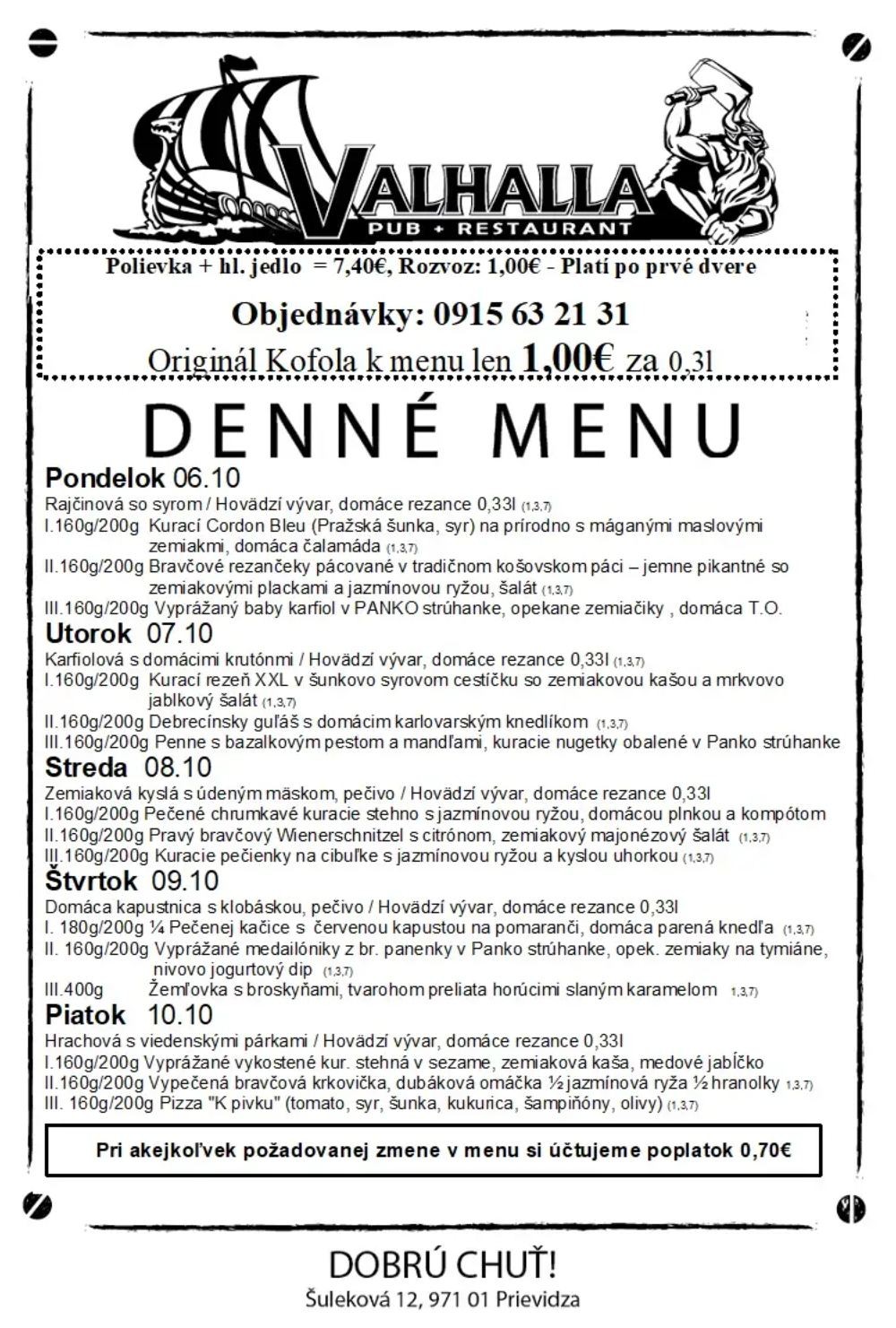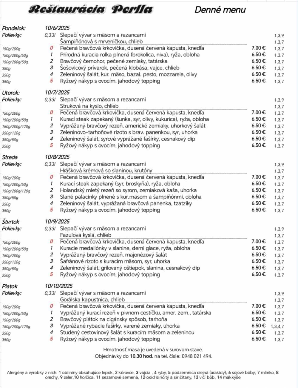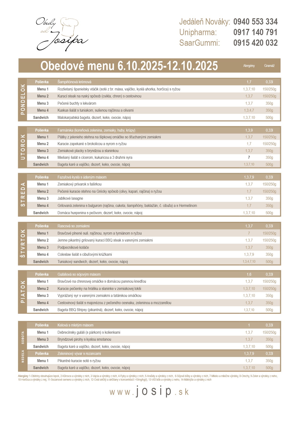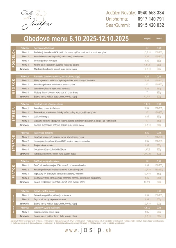 Obedové menu