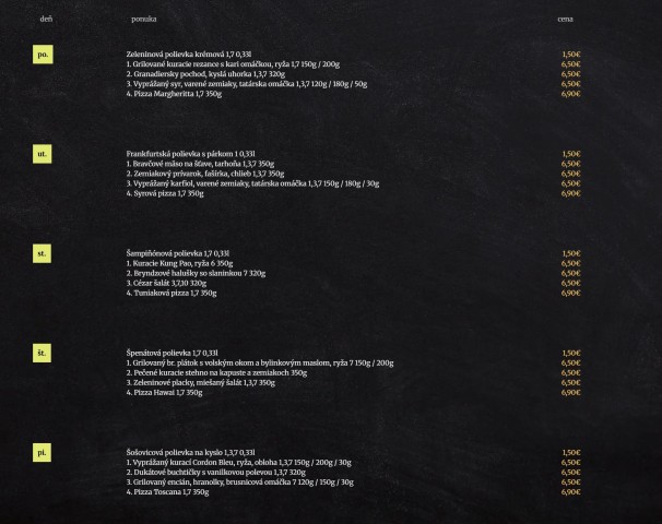 ku obľúbenýmPozrite si denné menu najbližších reštaurácií.