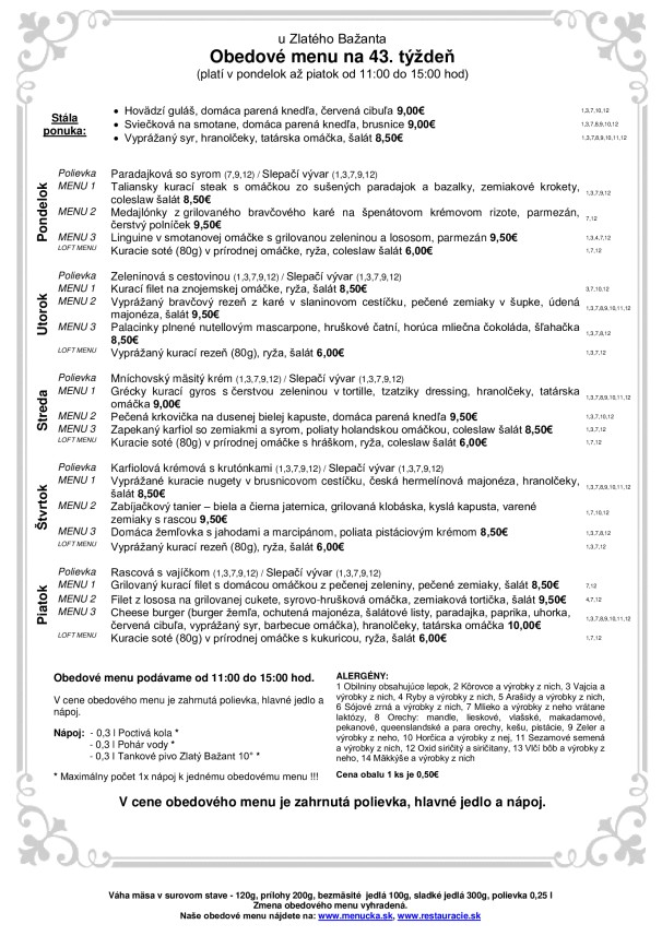 ku obľúbenýmPozrite si denné menu najbližších reštaurácií.