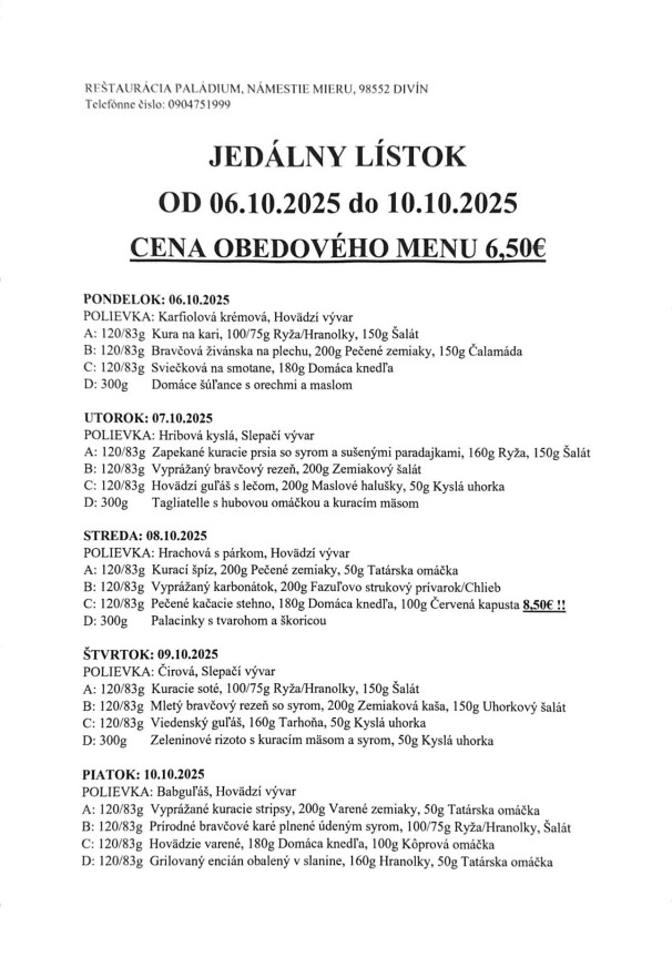 Denné menu Divín