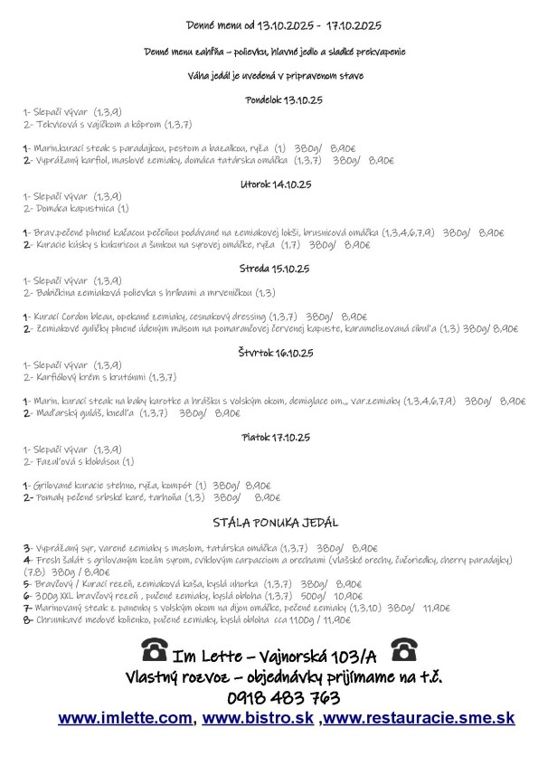 : 146Im Lette Reštaurácia, Kaviareň, Bratislava