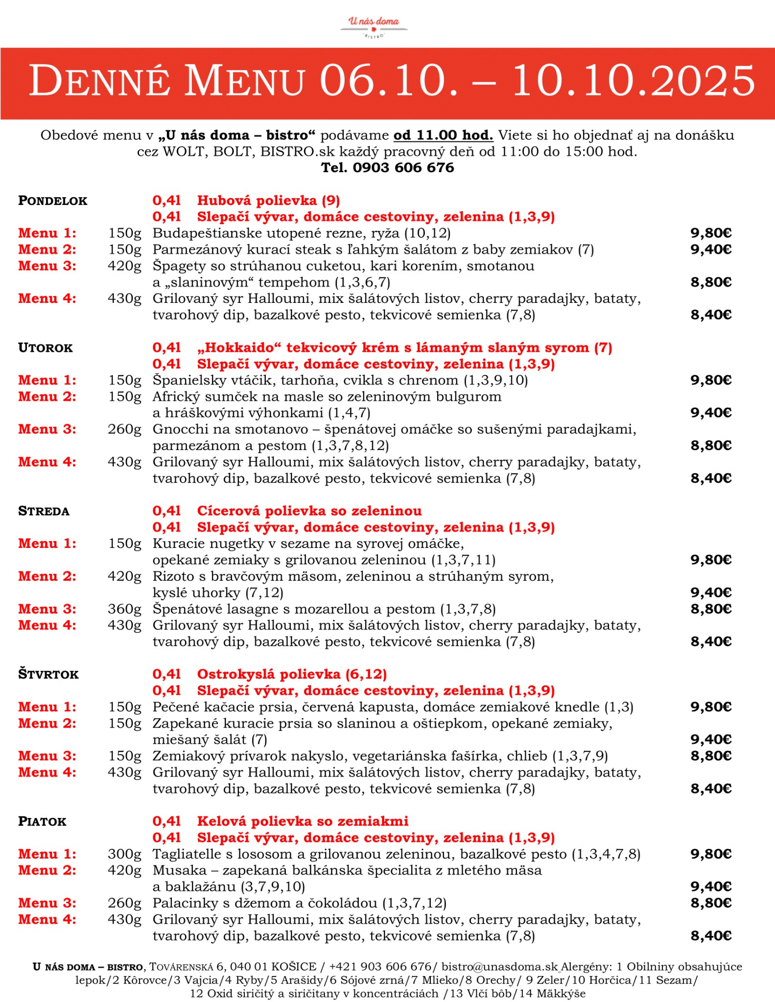 ku obľúbenýmPozrite si denné menu najbližších reštaurácií.