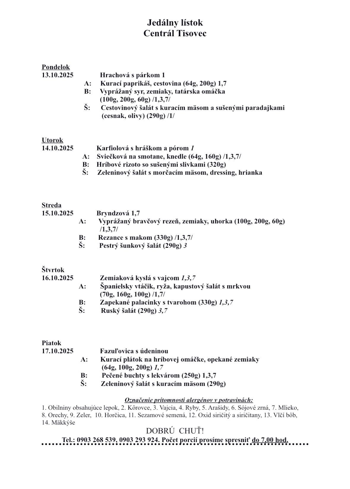 Obedové menu (13.10.2025 - 19.10.2025)