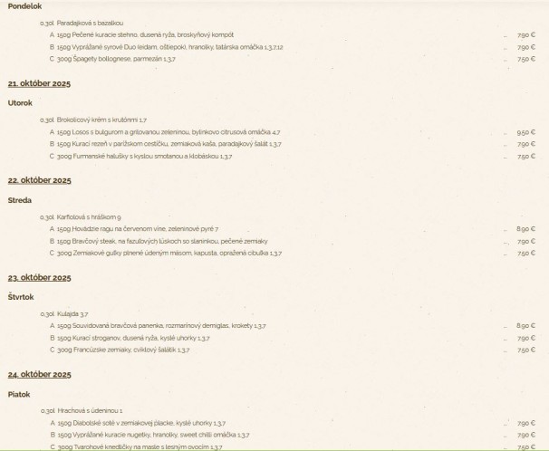 ku obľúbenýmPozrite si denné menu najbližších reštaurácií.