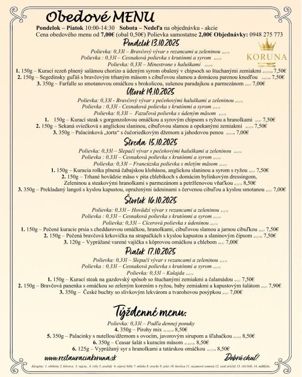 ku obľúbenýmPozrite si denné menu najbližších reštaurácií.