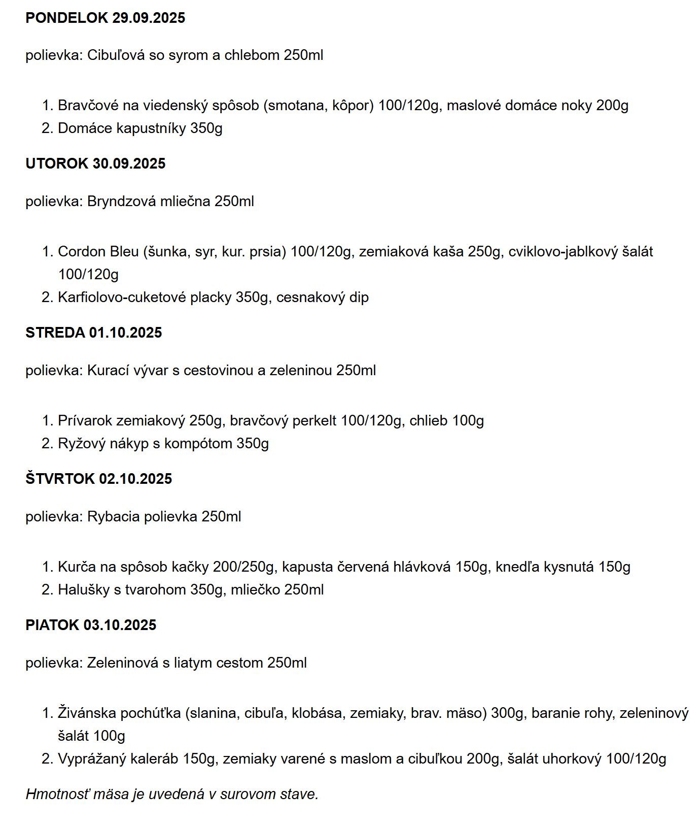 denné menu
