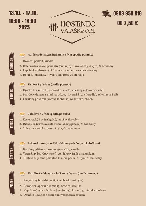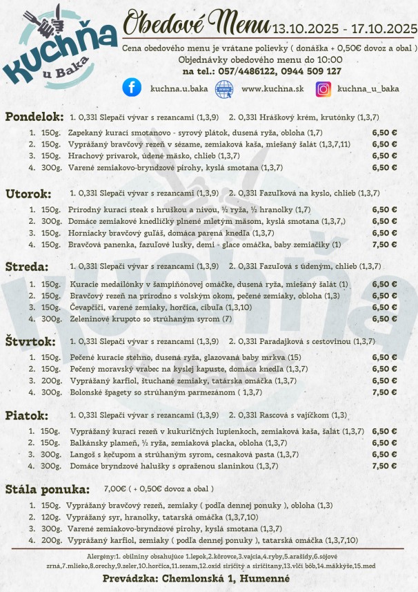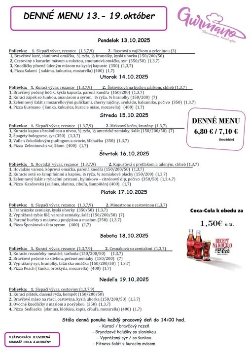 ku obľúbenýmPozrite si denné menu najbližších reštaurácií.
