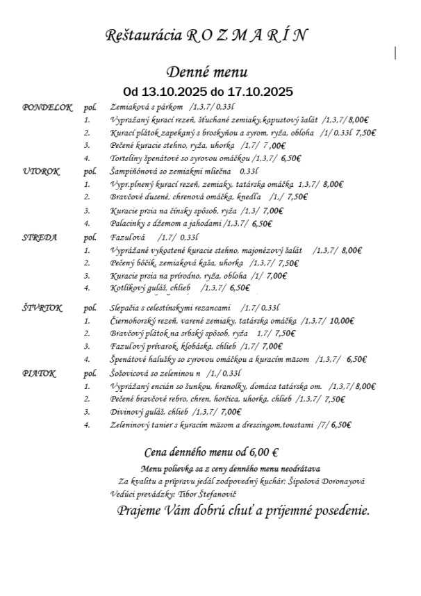 ku obľúbenýmPozrite si denné menu najbližších reštaurácií.