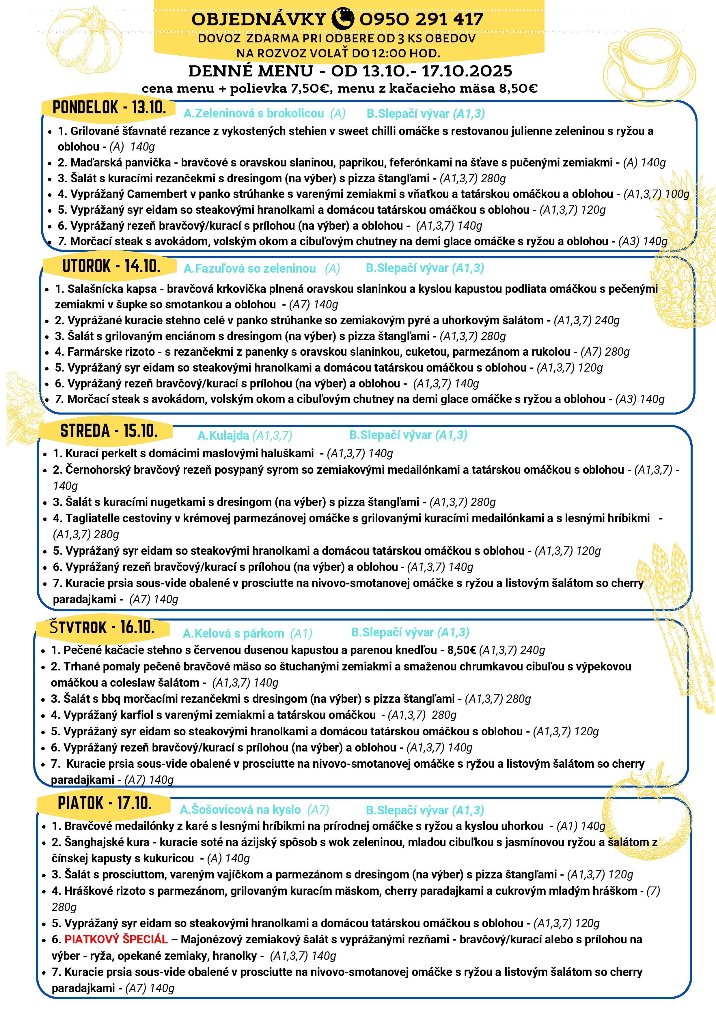 Čapované pivo | Donáška | Firemné podujatia a akcie | Grilovanie | Organizovanie spoločenských podujatí | Pravidelné denné menu | Pravidelný hudobný program | Živá hudba |