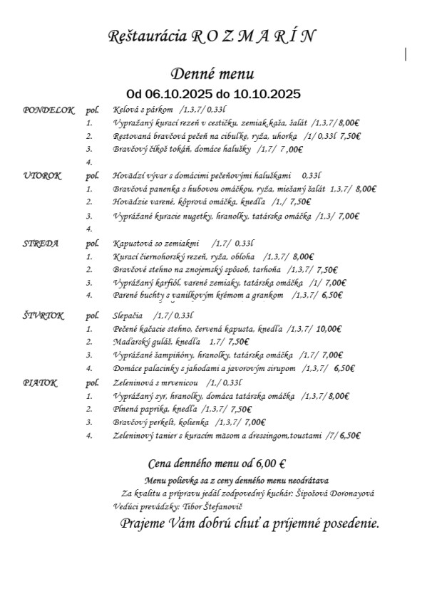 ku obľúbenýmPozrite si denné menu najbližších reštaurácií.