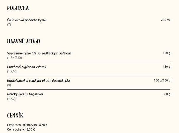 ku obľúbenýmPozrite si denné menu najbližších reštaurácií.
